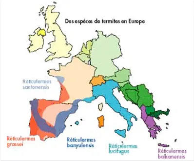 - En France 6 espèces de termites sont connues pour leurs dégâts sur les habitations.