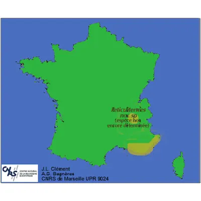 Carte détaillée du CNRS, de la répartition des termites en France par espèces.