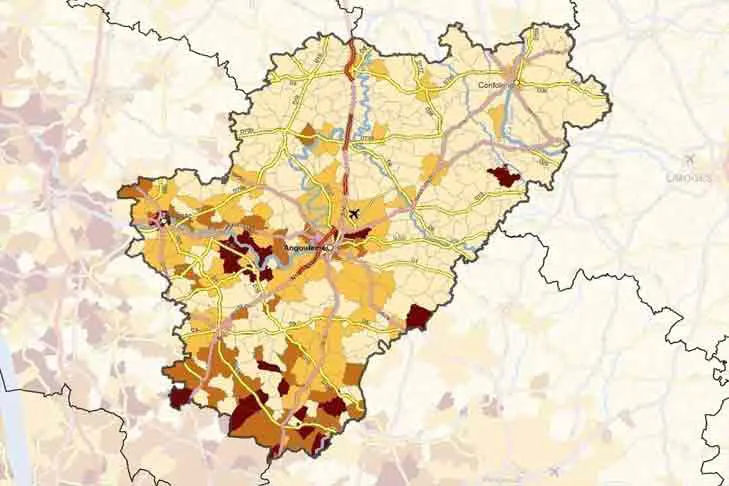 La moitié sud est la plus touchée, notamment les secteurs de Grand Angoulême, Grand Cognac et le Sud-Charente.